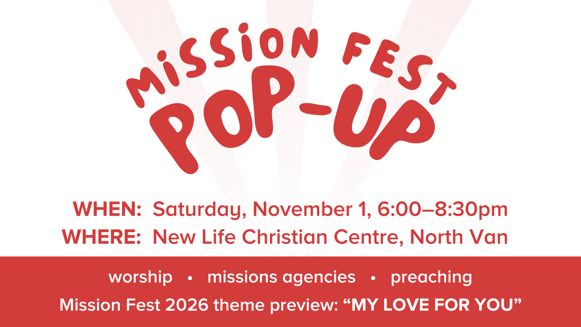 Many of us remember hearing about or attending Mission Fest Vancouver at BC Place! Last year, Mission Fest moved from downtown Vancouver to Chilliwack, which is where it will be again this coming February. God continues to use the conference to equip people to follow Jesus wherever He sends them. This fall Mission Central is hosting three one-night “Pop-Up” events leading up to the 2026 conference, in downtown Vancouver, North Vancouver, and Abbotsford. If you are interested in hearing more about Mission Fest or the Pop-Up events, the information will be in our bulletin, out in the lobby, or on their website, missioncentral.ca.
